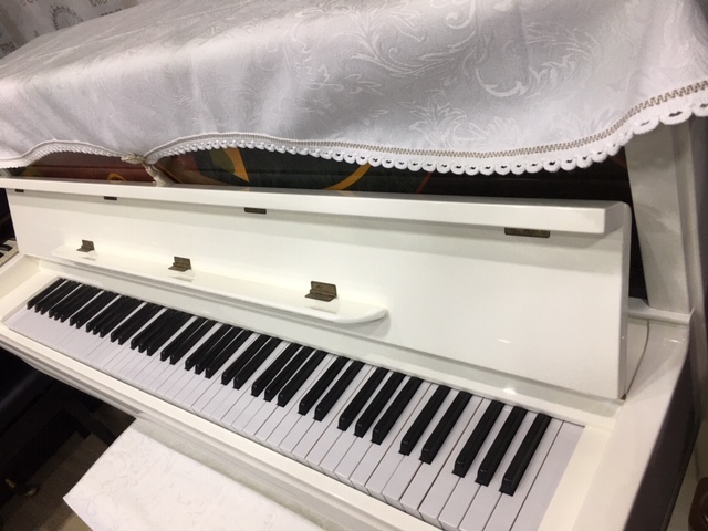 Lý do: đàn piano cũ, màu trắng có tuổi khoảng từ 10 năm trở lên, sơn sẽ bị ngả vàng, nhìn không đẹp. Cũng tuổi đời như vậy, đối với các màu sơn khác, khi đánh bóng lên, nói chung, nhìn đẹp, không phải sơn lại.